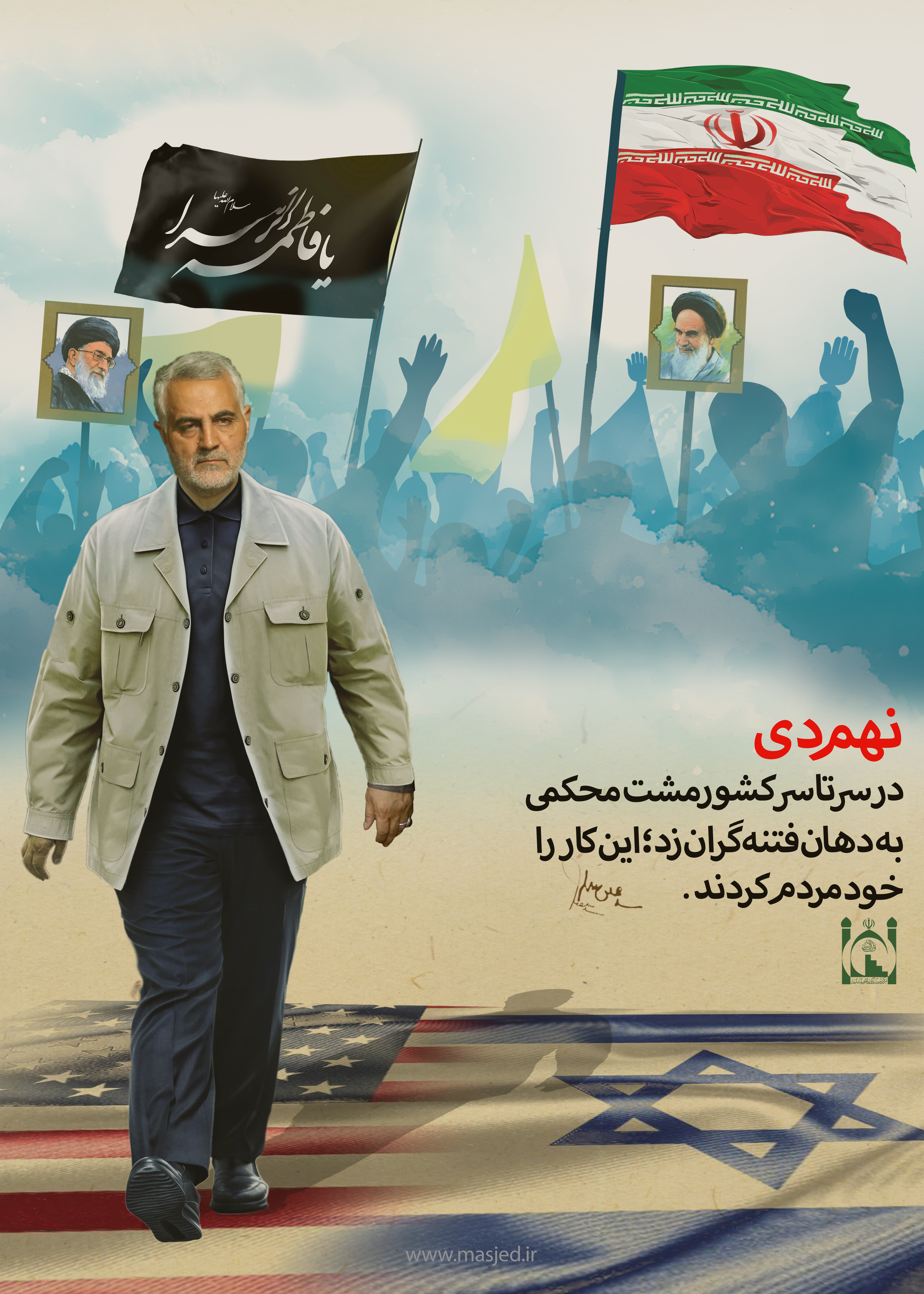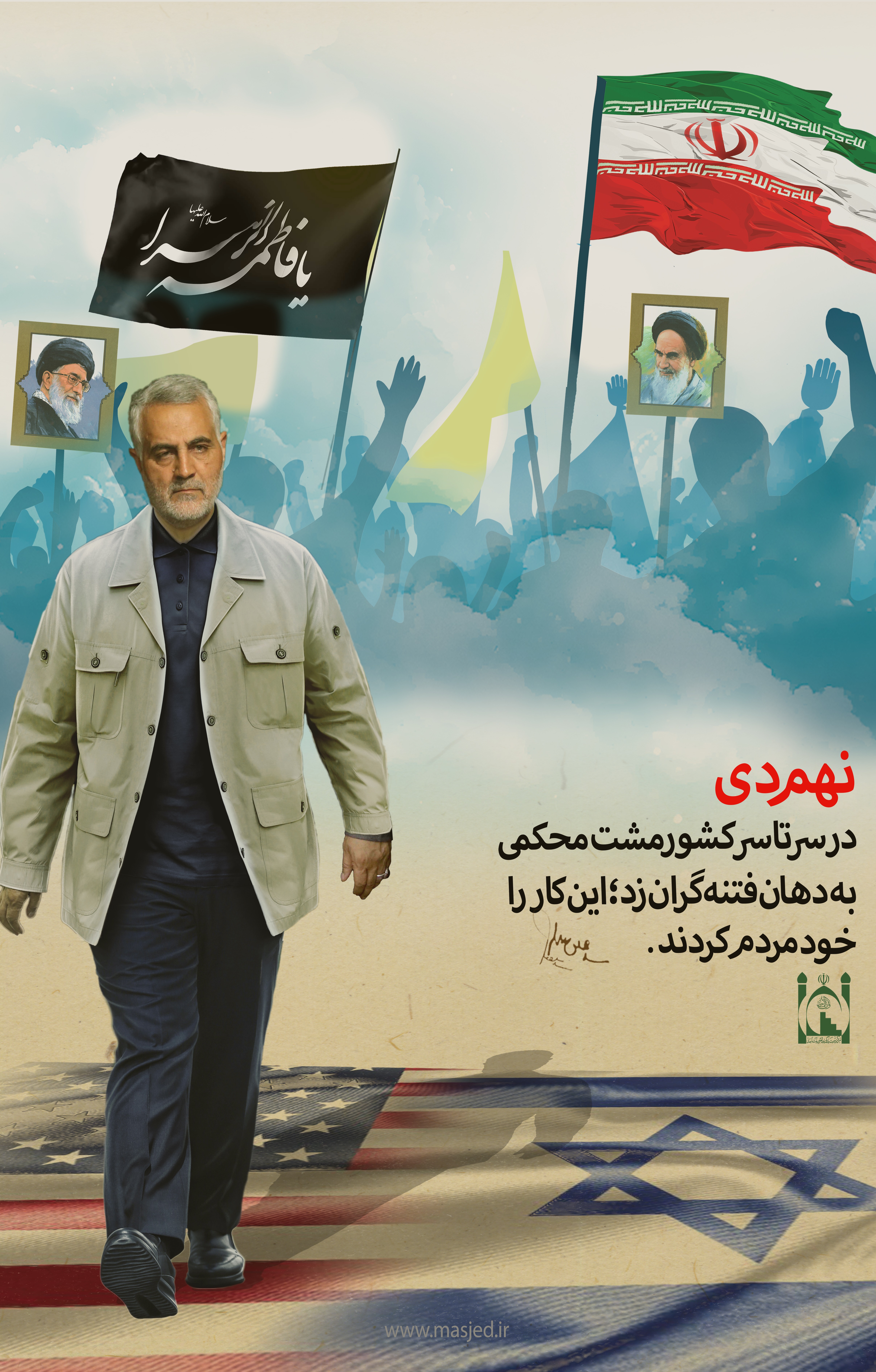 این پوستر تصویرگر عظمت و شکوه حضور با بصیرت مردم در ریشه کن نمودن فتنه ی سهمگین سال ۸۸ می باشد، همچنین در این پوستر از تصویر سردار سپهبد شهید حاج قاسم سلیمانی رضوان الله علیه در طلایه داری بصیرت و مقاومت استفاده شده است.